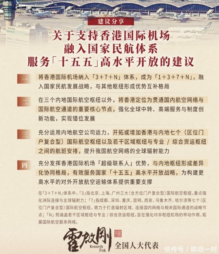 作为扎根香港、心系家国的本土代表,他聚焦国际航空枢纽建设这一关键议题,提出将香港国际机场正式纳入国家“3+7+N”国际航空枢纽总体布局,构建起“1+3+7+N”全新战略架构。